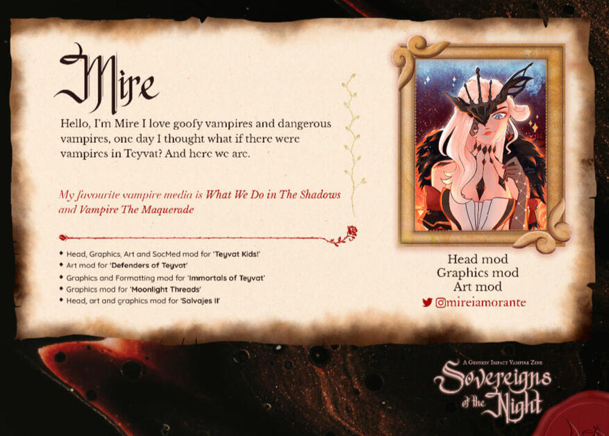 Head, graphics & art mod and Page & merch artist on Sovereigns of the Night